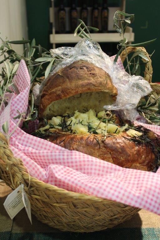 Olivenölhäppchen angerichtet in einem Brotlaib aus Altamura