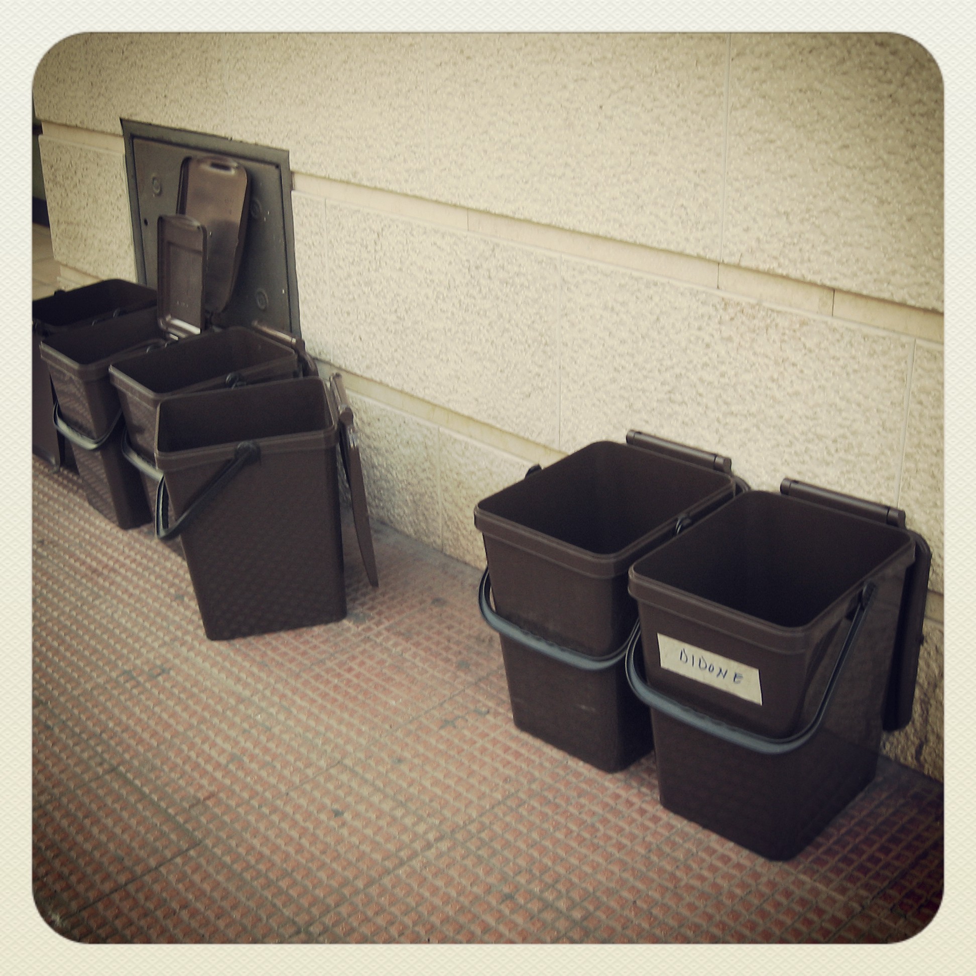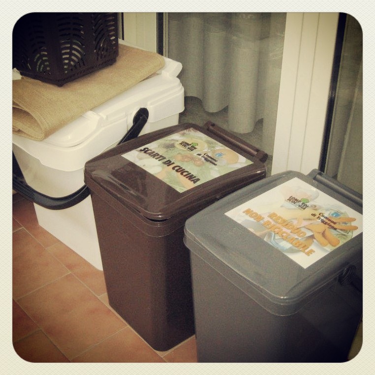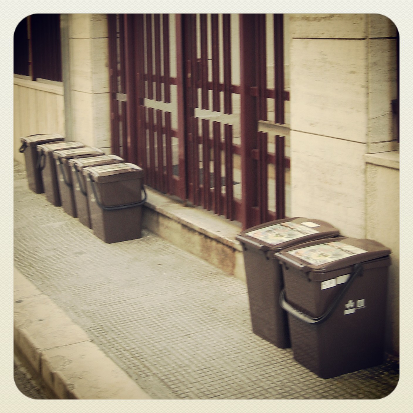 IMG_20130411_143915Während sich in Deutschland gewöhnlich abschließbare Gemeinschaftsmülltonnen hinter Mäuerchen vor großen Wohnblöcken verstecken, haben in Triggiano vor ein paar Wochen Angestellte des Müllunternehmens Lombardi Ecologia an jeder Haustür geklingelt und Mülleimer für die getrennte Müllsammlung vorbei gebracht. Plötzlich stapelten sich in Marias Küche ein kleiner brauner Eimer für den Biomüll, einer weißer für Papier und ein kleiner grauer Eimer für den Restmüll. Es gab auch eine ökologisch wertvolle Jutetasche, in der man seine Glasflaschen zum Container tragen soll, und eine Rolle gelber Säcke für Plastik, Blechbüchsen usw. Die Eimerchen sind inzwischen auf den Balkon umgezogen. Das allgemeine Misstrauen jedoch ist geblieben: Ist die ganze Aktion wirklich von vorn bis hinten durchdacht oder hat die Comune nur aus irgendeinem Fonds Geld bekommen, das für ein halbgares Projekt ausgegeben wurde? Werden diese kleinen Mülleimer genügen? Schließlich hat ein Singlehaushalt die gleiche Größe und Anzahl bekommen, wie eine vierköpfige Familie. Was mache ich, wenn mir mein Mülleimer vor der Haustür geklaut wird? Wohin mit dem Abfall, wenn das Eimerchen voll und der Abholtag erst übermorgen ist? Fragen über IMG_20130411_144015Fragen… Dazu kommt, dass die Bürgersteige in Triggiano außer an den großen Hauptstraßen äußerst schmal und häufig auch uneben sind, so dass abgestellte Mülleimer ein Hindernis für Fußgänger darstellen. Außerdem wohnen in den großen Palazzi in jedem Aufgang um die zehn Parteien. Zehn kleine Mülleimer vor jedem Haus dürften sich vermutlich auch nicht ästhetischer in das Straßenbild fügen als ein überquellender Müllcontainer.