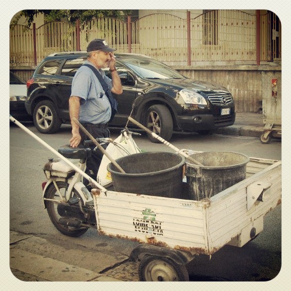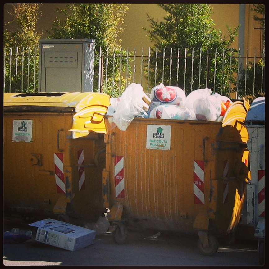 Aus dem Brief wurde jedoch nicht deutlich, wo genau diese persönlichen Mülltonnen aufgestellt werden sollen. Viele Palazzi haben keinen Innenhof und die, in denen einer zur Verfügung steht, sind stets genauso mit Autos zugeparkt wie die Straßenränder. Gespannt bin ich auch darauf, wohin man die Mülltonnen bringen soll, wenn sie entleert werden müssen. Nun, ja, ich werde es erfahren – „in den folgenden Wochen“