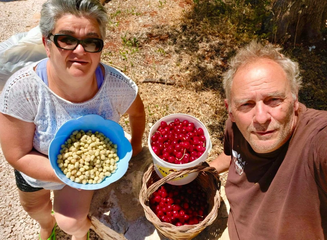 Meine Frau Valentina und ihre Familie stammen tatsächlich aus der Nähe von Ostuni. Ich hingegen komme aus Deutschland. Heute verbinden wir beide Welten miteinander: Valentinas Eltern Andreas und Tina leben überwiegend in Ostuni und kümmern sich um die Felder. Wenn wir im Urlaub in den Süden fahren unterstützen wir die beiden und helfen bei der Ernte.