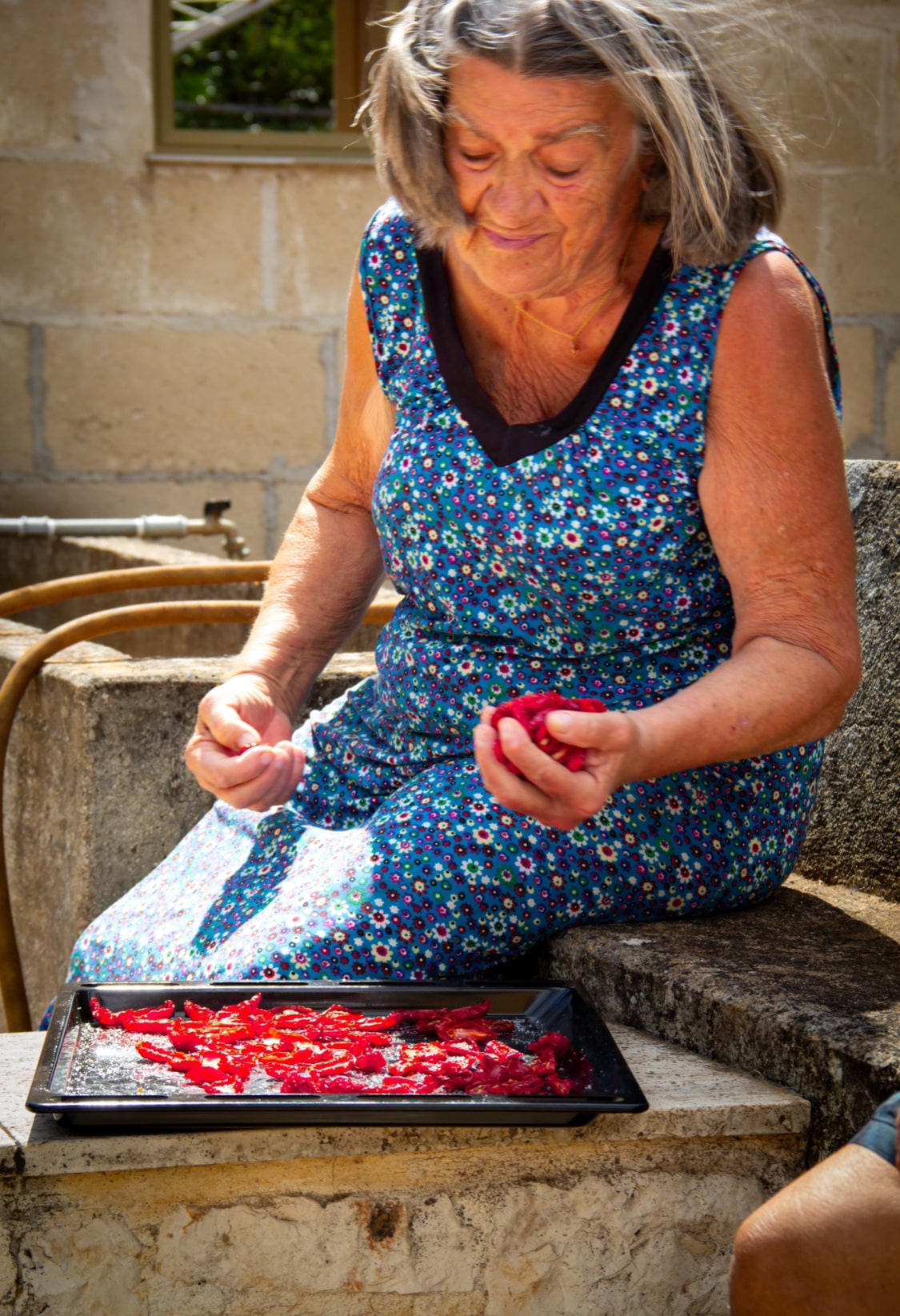 Als Valentina noch ein Kind war, sind ihre Eltern wegen der Arbeit nach Deutschland gezogen und haben ein Restaurant in Karlsruhe eröffnet. Der Alltag war natürlich geprägt von Gästen, Küche, Service und langen Arbeitstagen. Nach etwa 30 Jahren entschieden sie sich dann dafür, ihren Lebensabend in Süditalien zu verbringen und in Ostuni einen kleinen Bio Bauernhof zu bewirtschaften. Das Leben auf dem Hof ist ruhiger, naturverbundener und die abwechslungsreiche Arbeit folgt viel stärker dem Rhythmus der Jahreszeiten. Natürlich möchten sie hier auch ihren Ruhestand genießen, wobei das manchmal bei der selbst auferlegten Arbeit eher weniger gelingt.