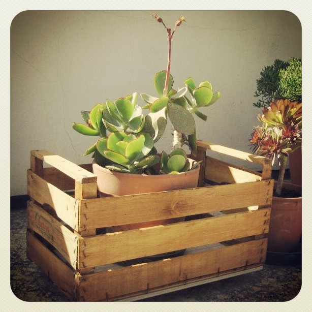 IMG_20140408_141300Als ich eines Tages nach Marktschluss in der Nähe der Marktstraße parkte, weil ich relativ  zeitig nach dem Mittagessen eine Stunde geben sollte, glaubte ich meinen Augen kaum zu trauen, als ich an unzähligen, zu einem riesigen Berg aufgetürmten Obst- undIMG_20140408_140813 Gemüsestiegen vorbeifuhr. Die Reinigungskolonne war noch nicht mit dem Aufräumen fertig. Und damit begann meine Gemüsekistenmanie. Mit dem Schleifgerät von splitternden Kanten befreit und mit ein bisschen Farbe lasiert, fungieren sie bereits als Aufbewahrungskisten für Katzenfutter, sowie als Blumentöpfe und Blumenständer. Wer weiß, was mir noch so alles für sie einfällt. Erst vorgestern habe ich wieder zwei an mich gebracht.
