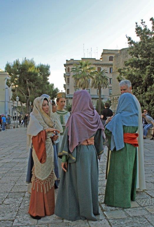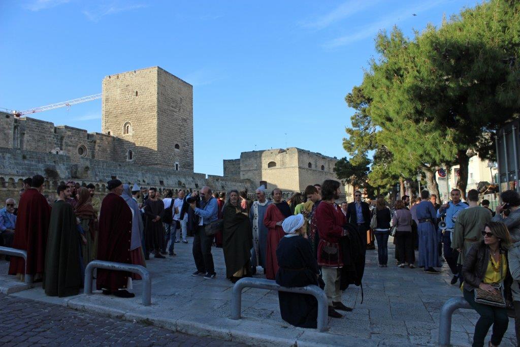 Am späten Nachmittag des 7. Mai wurde vor dem Schloss von Bari bereits die Nervösität der Darsteller des historischen Festumzugs spürbar, die ein letztes Mal die Aufstellungen besprachen, um dann auf den Beginn des Spektakels zu warten.