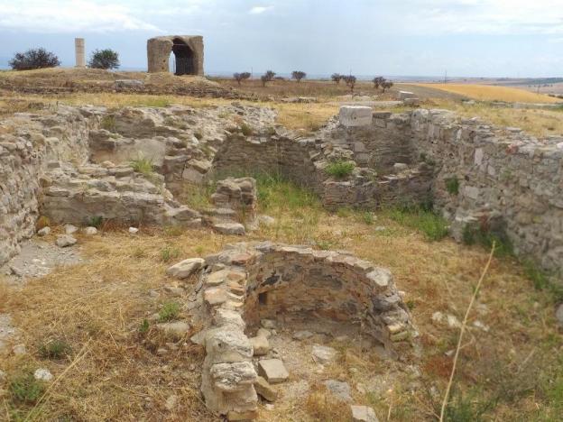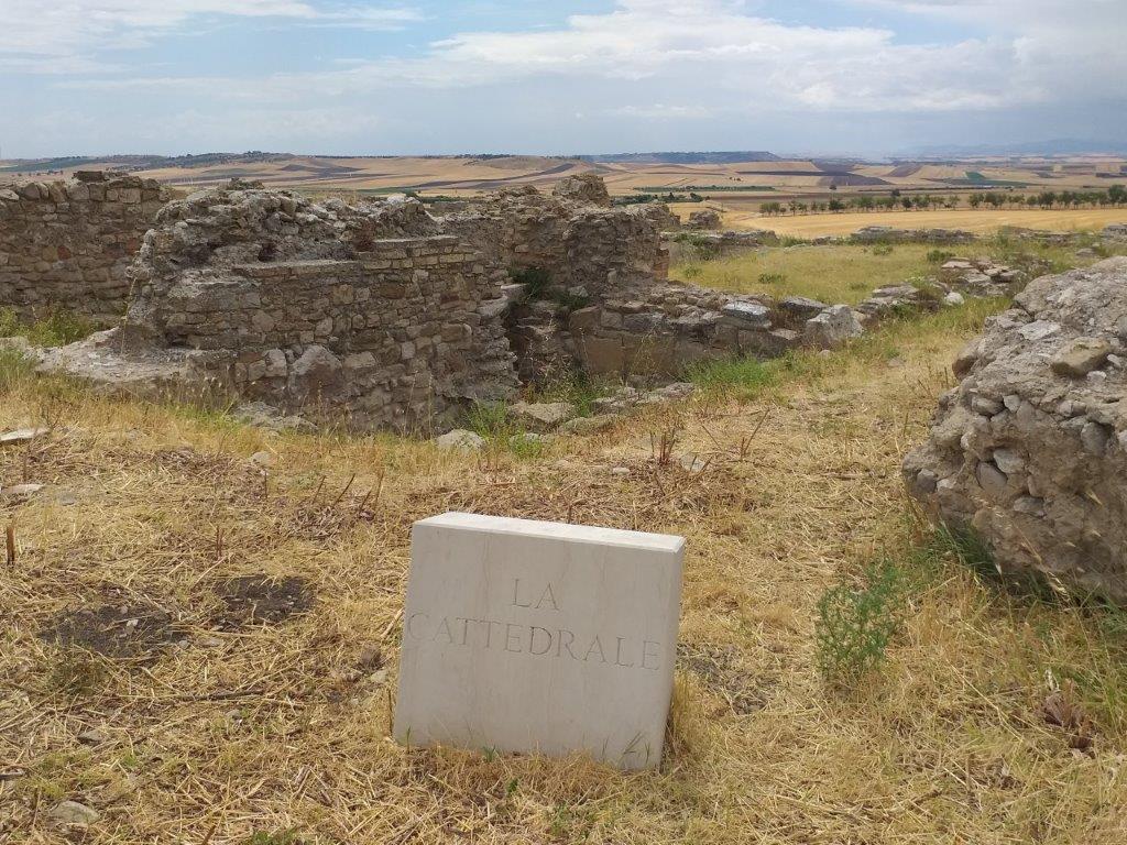 Außer der Turmruine und der Säule sind hier einige Grundmauern des einstigen Ortes ausgegraben und andeutungsweise aufgerichtet. Man erkennt, dass Häuser und Kirchen entlang einer breiteren Hauptstraße mit mehreren Querstraßen angelegt waren. Auch die Stadtmauer ist angedeutet. Zu Friedrichs Zeiten soll eine kleine Burg hier gestanden haben. Aber das ganze Ausmaß der Anlage zu erahnen, ist selbst für meine blühende Fantasie zu viel. Historiker werden wahrscheinlich mehr aus den Ruinen herauslesen, aber wir sind schon dankbar für die Steintafeln, auf denen steht, um was für ein Gebäude es sich handelt. Wirklich schön ist, dass man in Castelfiorentino so einfach in der Geschichte herumwandern und sich zwischen Steinen, die schon vor einem Jahrtausend behauen wurden, an den unendlichen gelben Stoppelfeldern ergötzen kann. Mein Sohn ruft nach einem Picknick. Leider sind wir nicht vorbereitet.