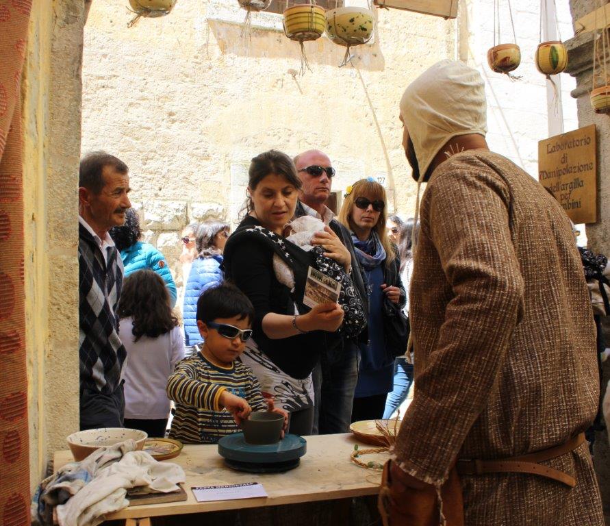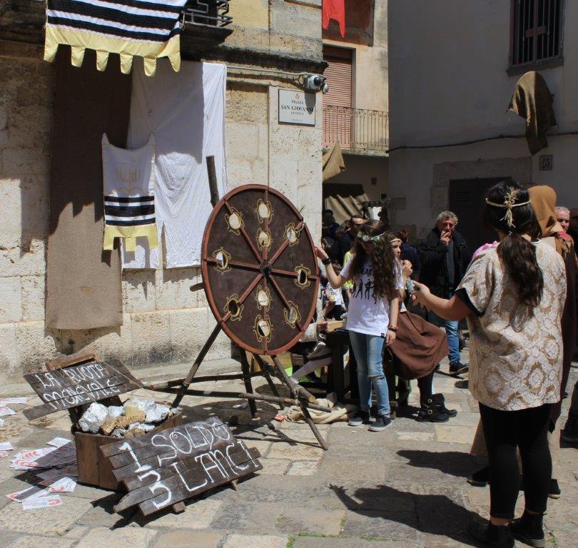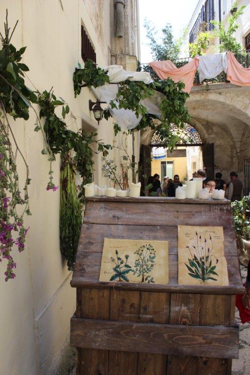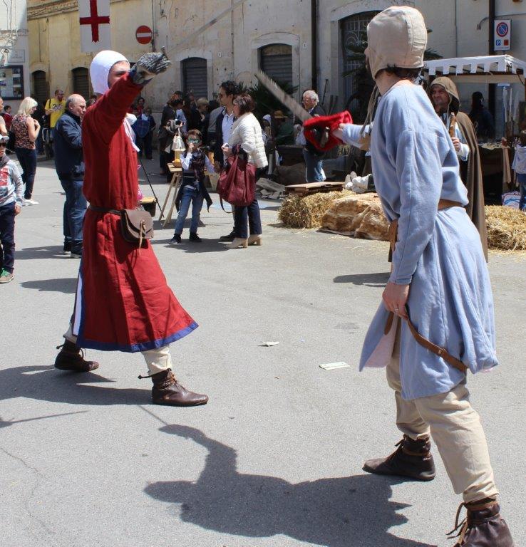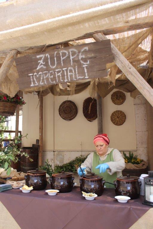 Trotzdem ließen wir uns überwiegend treiben, bewunderten die Stände, an denen Handwerkskunst verkauft wurde, aßen Salsiccia (grobe Würstchen) vom Grill, Pettole frisch aus der Frittierpfanne und leckeres Eis sowieso. Dabei bestaunten wir immer wieder, die durchweg verkleideten Händler und Darsteller. Vielleicht hatte man sogar ganz Altamura an diesem Tag in mittelalterlich anmutende Kostüme gesteckt, denn alle modern gekleideten Personen schienen Touristen zu sein. Gegen zwei waren die Nichtkostümierten dann deutlich in der Unterzahl, denn die meisten Gäste der Stadt müssen sich wohl zum Mittagessen zurückgezogen haben.