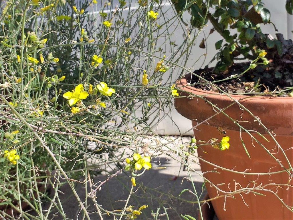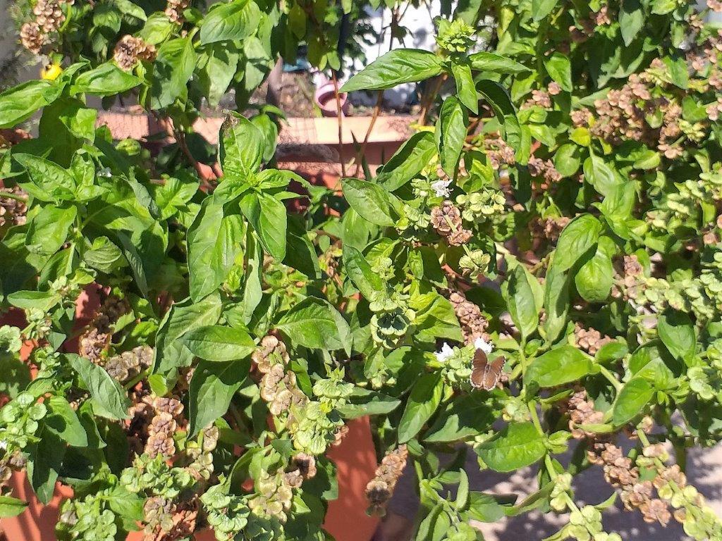 Und wer Lust hat, darf auf dem Bild mit den Rucolablüten gern das fleißige Bienchen suchen. Diese knallgelben Bienenmagneten sind übrigens auch essbar und peppen nicht nur optisch Blattsalate auf. Unsere Basilikumblüten locken hingegen kleine Schmetterlinge an. Wer einen findet, darf ihn behalten.