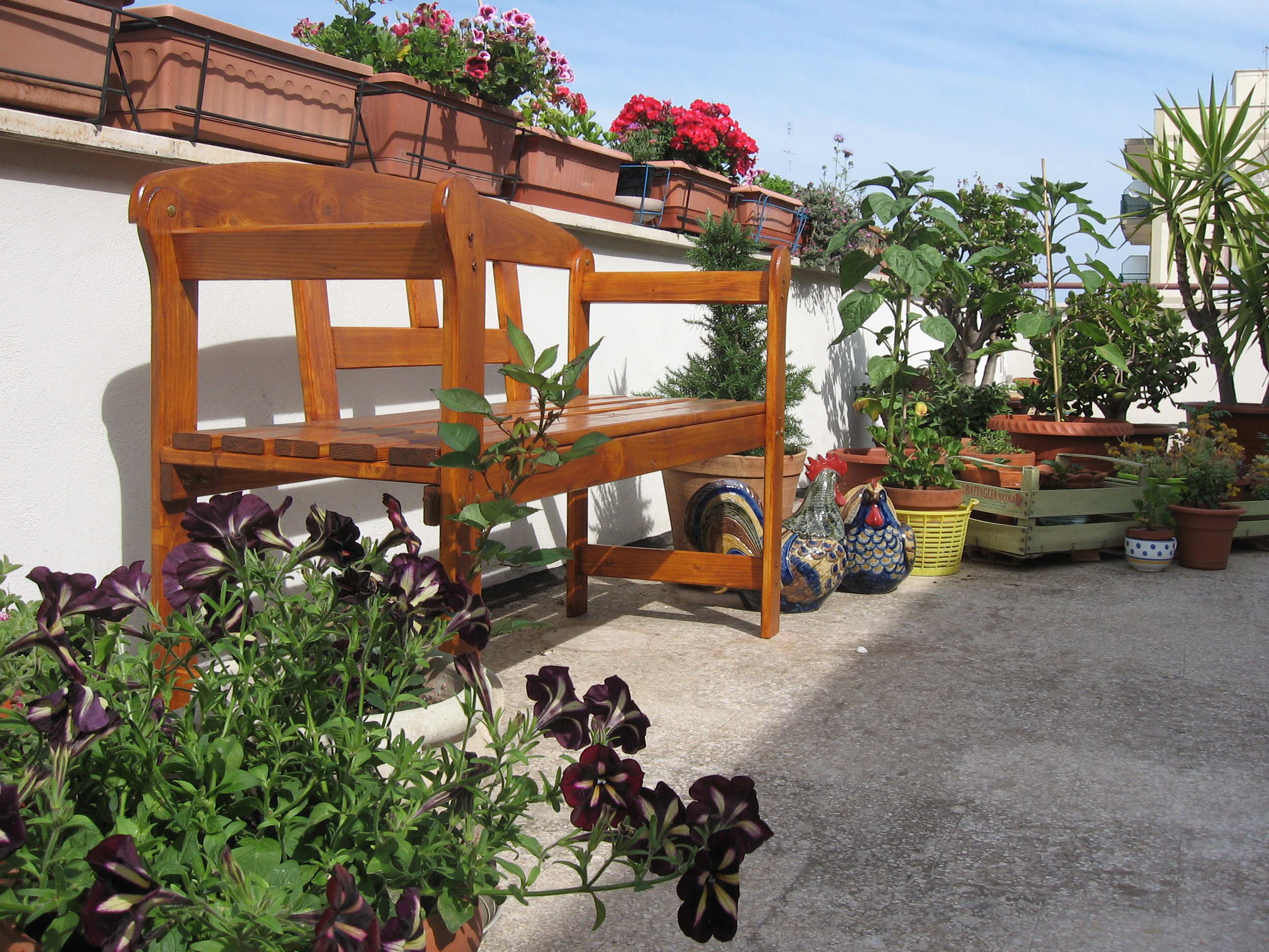 Aber auch abgesehen von der Wohnungsrenovierung und -einrichtung ist im letzten Apulienjahr viel passiert: ich habe mit Freunden und Verwandten meine neue Heimat erkundet, meine Unterichtstätigkeit auf mehrere Schulen ausgedehnt und bin inzwischen froh über das Sommerloch. Endlich kann ich abends unsere Terrasse genießen, auf der es inzwischen in allen Ecken blüht und grünt, und komme nicht länger nur zum Schlafen nach Hause. Wer denkt, dass das Grillen nur ein deutscher Nationalsport sei, der kennt die Italiener nicht. Wir machen dabei inzwischen trotz des WM-Aus‘ kräftig mit und erfreuen unsere Findelkatze Gina mit den ihr zustehenden Abgaben.