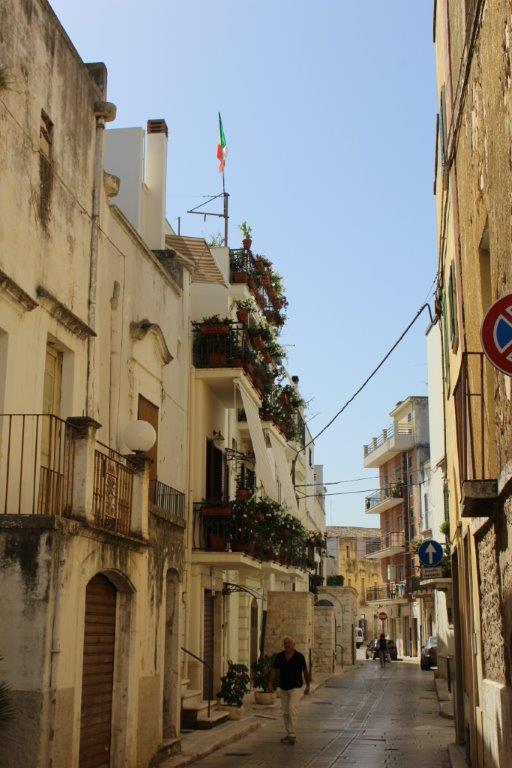 Wir schlagen uns von Kerker über eine Kirche mit einem weithin sichtbaren Uhrenturm, dem Wahrzeichen von Turi nach rechts in die „città vecchia”. Sehr sympathisch, dass die Altstadt ein gepflegtes Kleinod mit restaurierten Gebäuden und vor allem neu gemachten Straßen ist. So können wir auch mit unserem Kinderwagen bequem durch die engen Gassen schlendern. Wie in allen süditalienischen Kleinstädten gibt es in der Altstadt von Turi eine Unmenge von Kirchen, welche die touristischen Hauptattraktionen bilden.