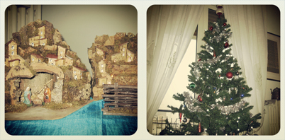 So weit, so gut. Man riecht also seit zwei Wochen im ganzen Haus, dass wir uns auf Weihnachten vorbereiten, aber man sah es bisher nur auf Luigis Kommode, wo ich Anfang Dezember aus nostalgischen Gründen ein paar erzgebirgische Holzschnitzerein aufgestellt hatte. Eigentlich wird in Italien am 8.12. weihnachtlich aufmunitioniert. Der arbeitsfreie Tag der „Maria Empfängnis“, der in diesem Jahr auf einen Samstag fiel, wird dazu genutzt, den (Plaste)Baum zu schmücken und sich gegenseitig im Aufstellen voluminöser Krippen zu überbieten. Nachdem sich die Balkons des Häuserblocks gegenüber in ein blinkendes Las Vegas verwandelt haben, und wir bei einer Bekannten Krippenaufbauten, die ein Drittel des Wohnzimmers einnahmen, bewundern durften, ist in Pasquale nun auch der Weihnachtsvirus ausgebrochen. Über die mäßige Begeisterung der restlichen Familie empört stapfte er mit einer Woche Verspätung in die Garage und trug nicht nur von dort diverse Pappkartons im Wohnzimmer zusammen. Darin befanden sich mehrere Krippen, zwei Weihnachtsbäume, mindestens fünf Lichterketten und anderes Zubehör, welches wir dekorativ in der Wohnung verteilten. Die Krippe kann mit dem Miniaturbethlehem der Bekannten natürlich nicht mithalten, denn sie findet bequem auf einem Tischchen Platz, aber dafür haben wir zwei Weihnachtsbäume und jede Menge Gebäck.